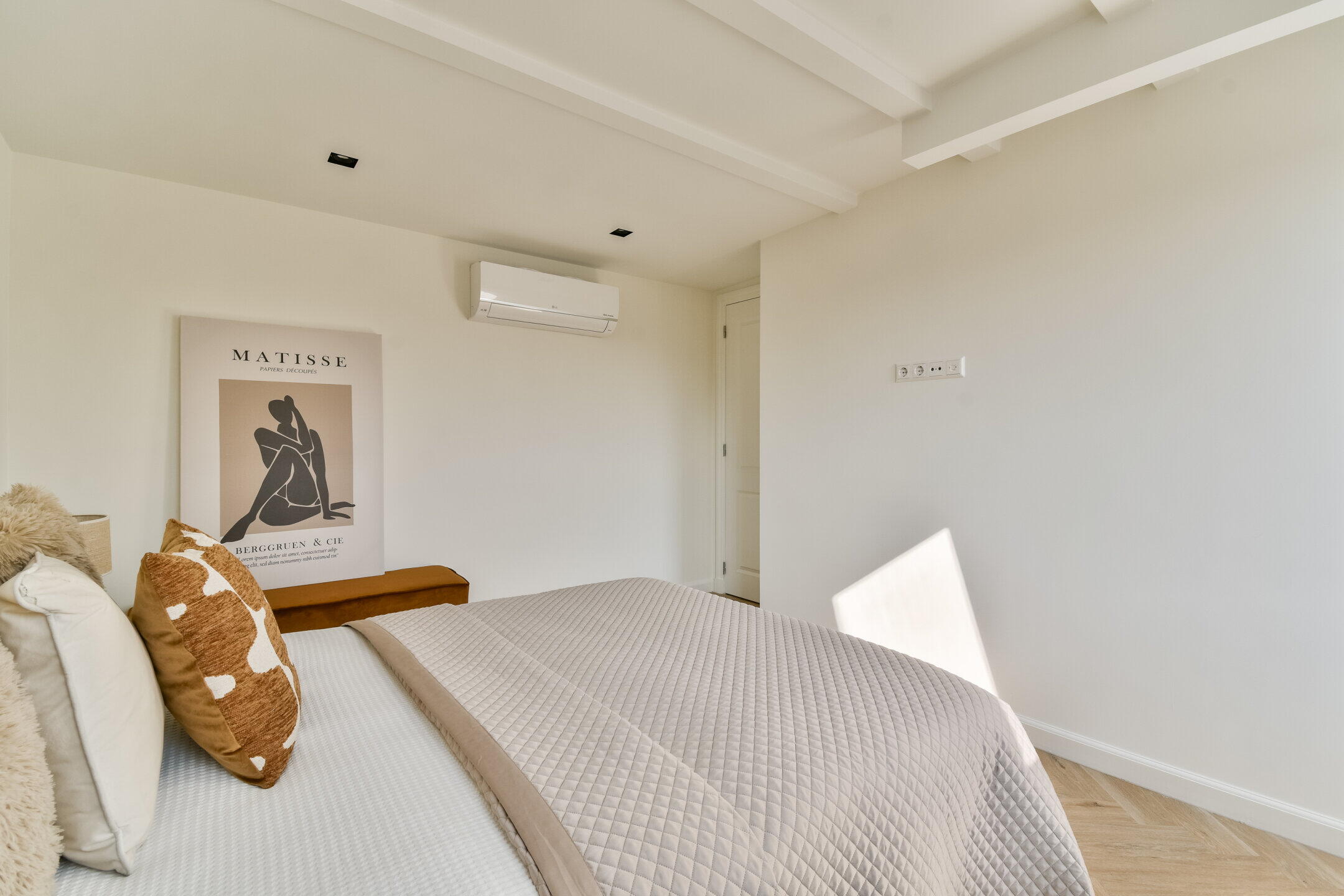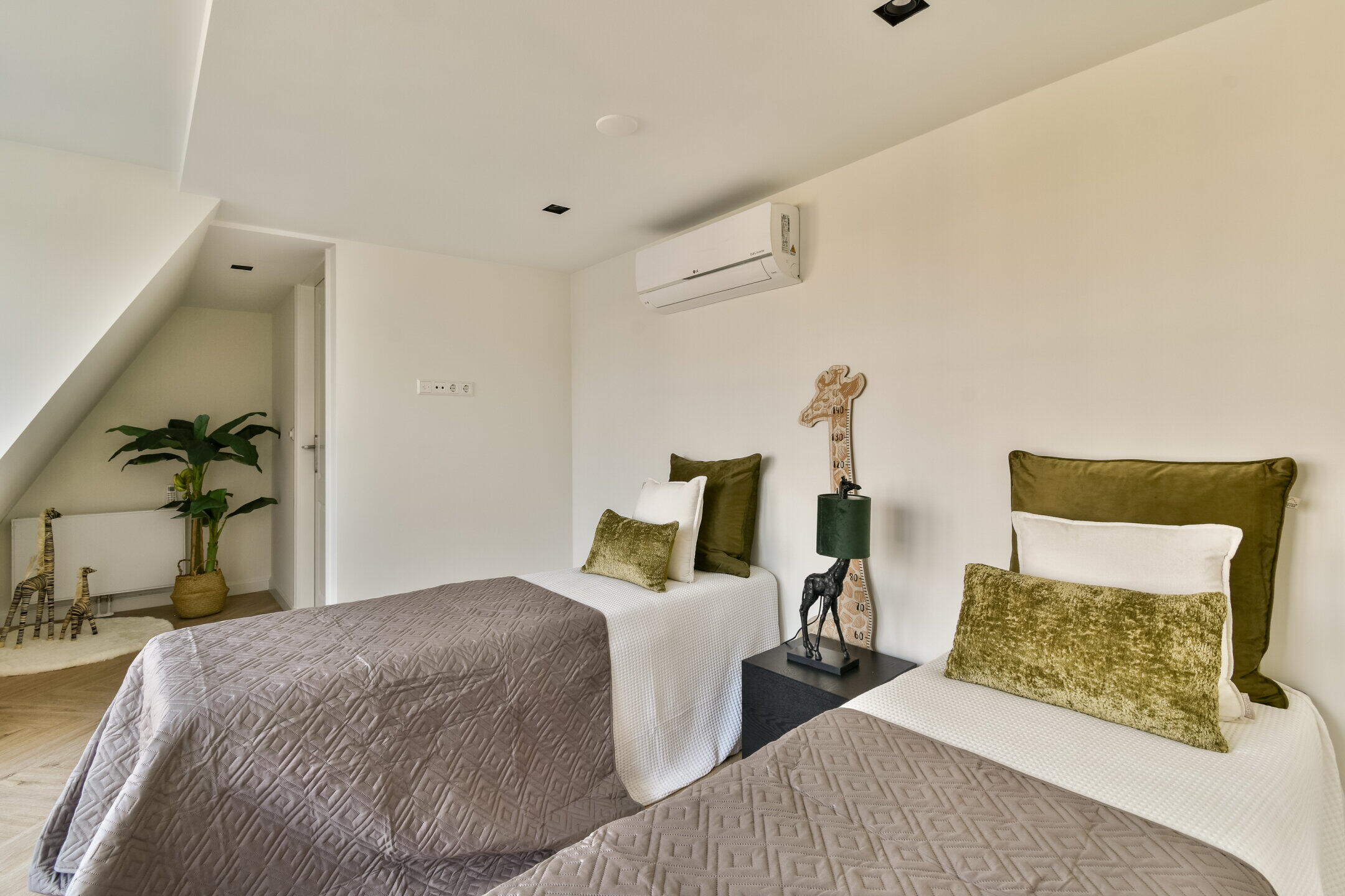 Via the internal staircase, you reach the fourth floor. Here you will find two additional bedrooms, both featuring a playful pitched roof construction that creates a characteristic and atmospheric appearance. The master bedroom is spacious and offers sufficient room for a large bed and wardrobe space.