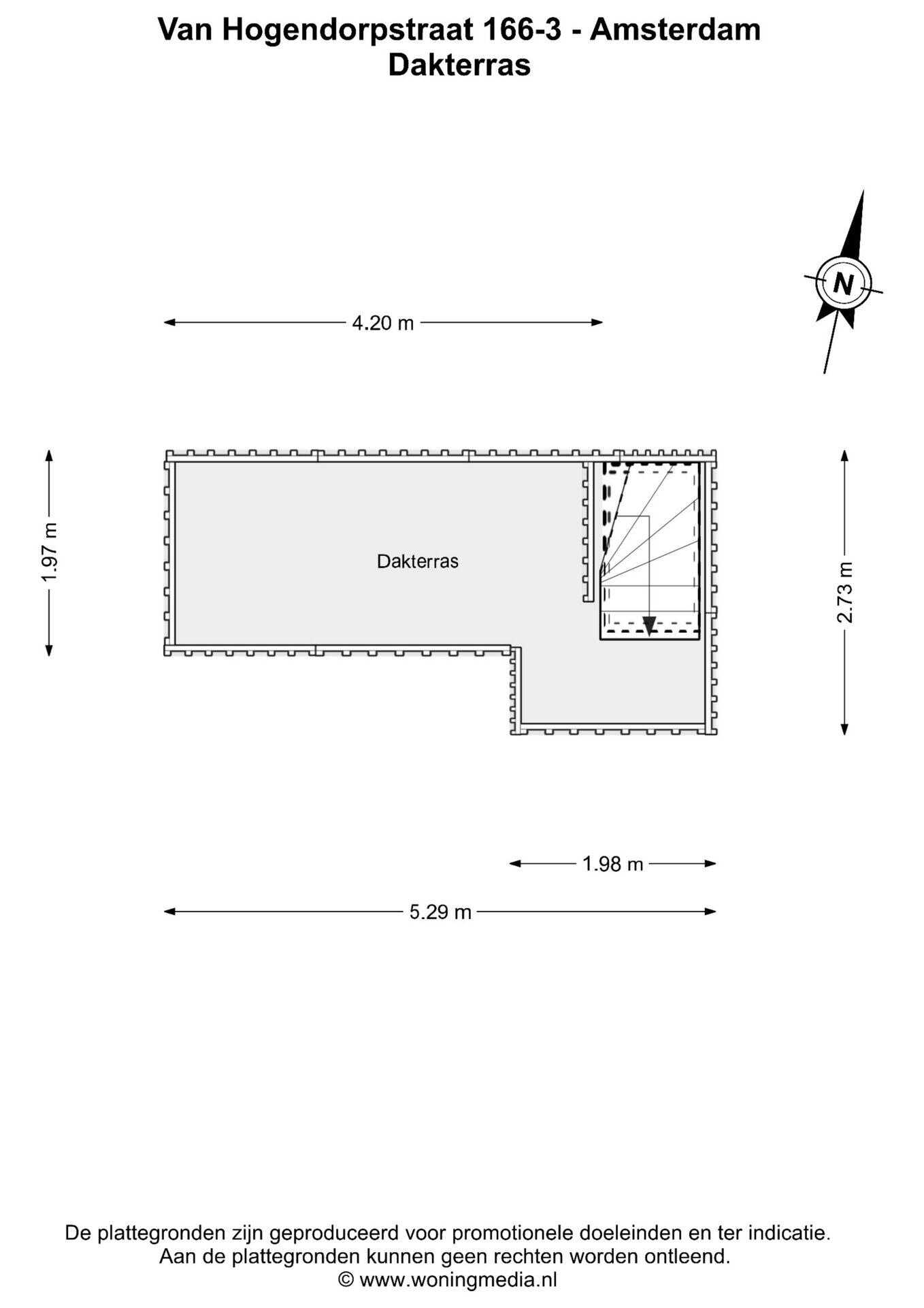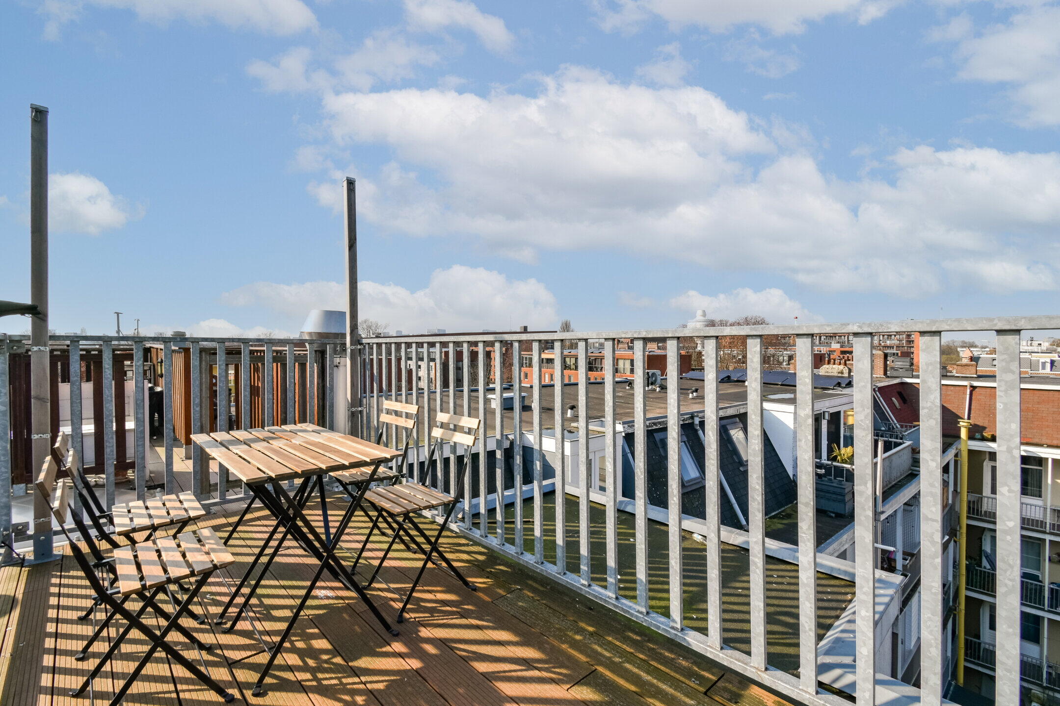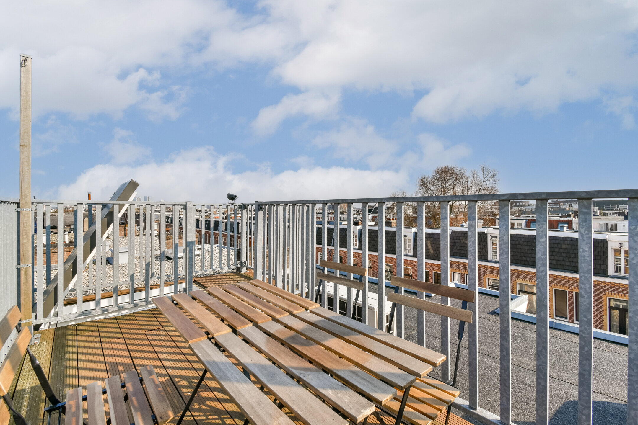Vanaf deze verdieping is er toegang tot het royale dakterras. Dit zonnige terras biedt een prachtig vrij uitzicht over de omliggende bebouwing en vormt een heerlijke plek om te ontspannen, te borrelen of in alle rust van de zon te genieten.