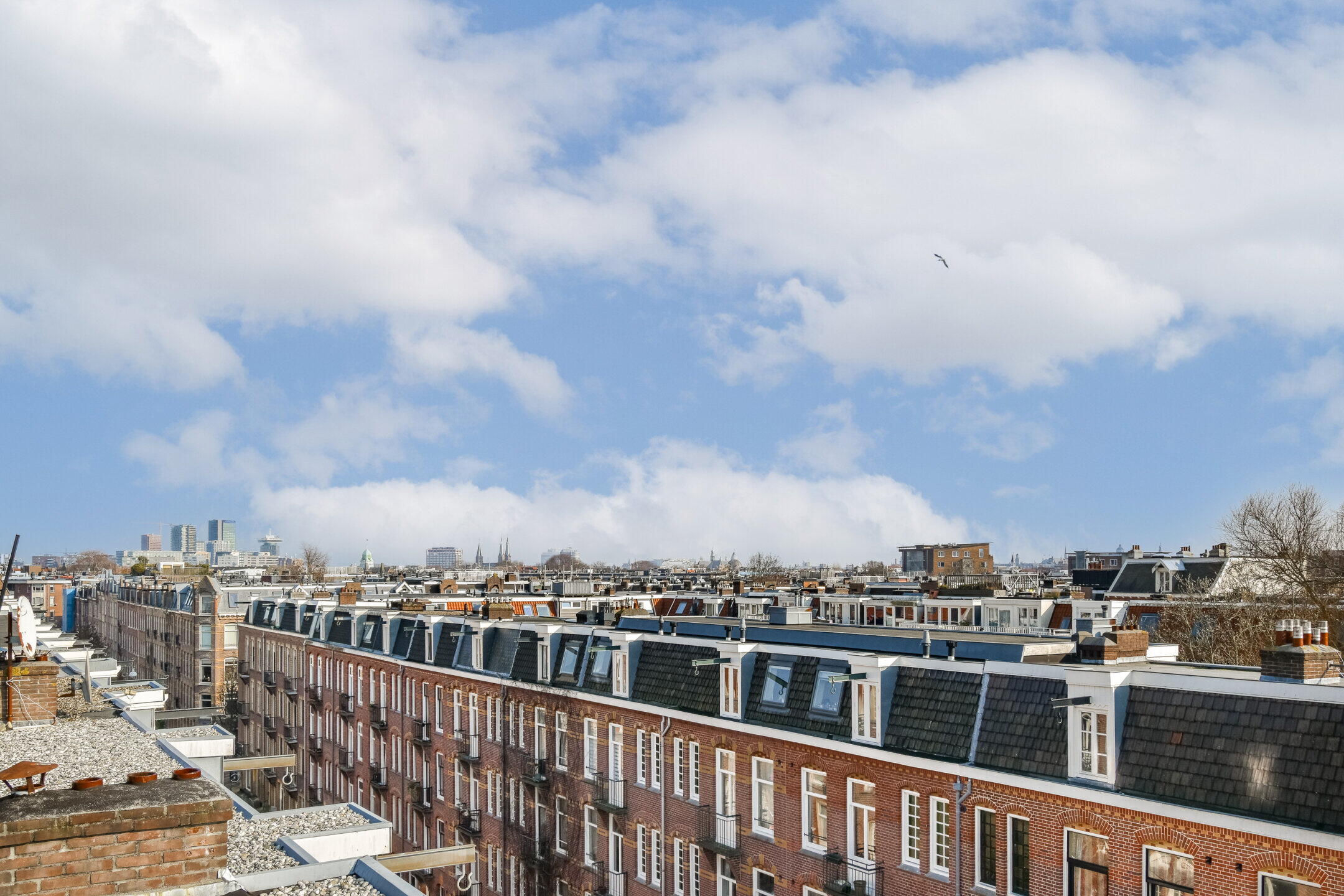 Located in a quiet street in the popular Staatsliedenbuurt, this particularly charming and fully renovated double upper apartment can be found. The property is spread over multiple floors and combines a bright and spacious living level, two comfortable bedrooms, two balconies, and a wonderful roof terrace with unobstructed views over the city. A perfect mix of character, modern living comfort, and outdoor space in a prime location in Amsterdam-West.
